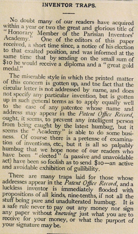 In the April 1893, edition of Engineer and Inventor, an article was published that questioned the validity of the Academy and its practices.
