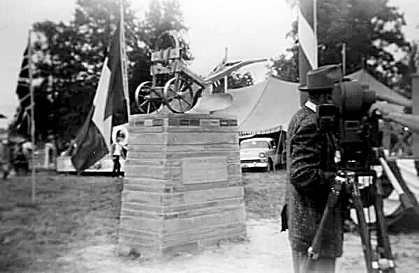 To commemorate the event, a “Cairn of Peace” monument was commissioned by Earl DeVore, general chairman of the exhibition. It consisted of a replica of a 15th Century plow atop a five-feet high pedestal. It was hand-made by blacksmith Everett Haas and his son, Todd, of the Ash Ridge area in Brown County, Ohio. Under the plow and surrounding the top of its platform were fourteen bricks, representing and supplied by each country participating in the plowing contests.