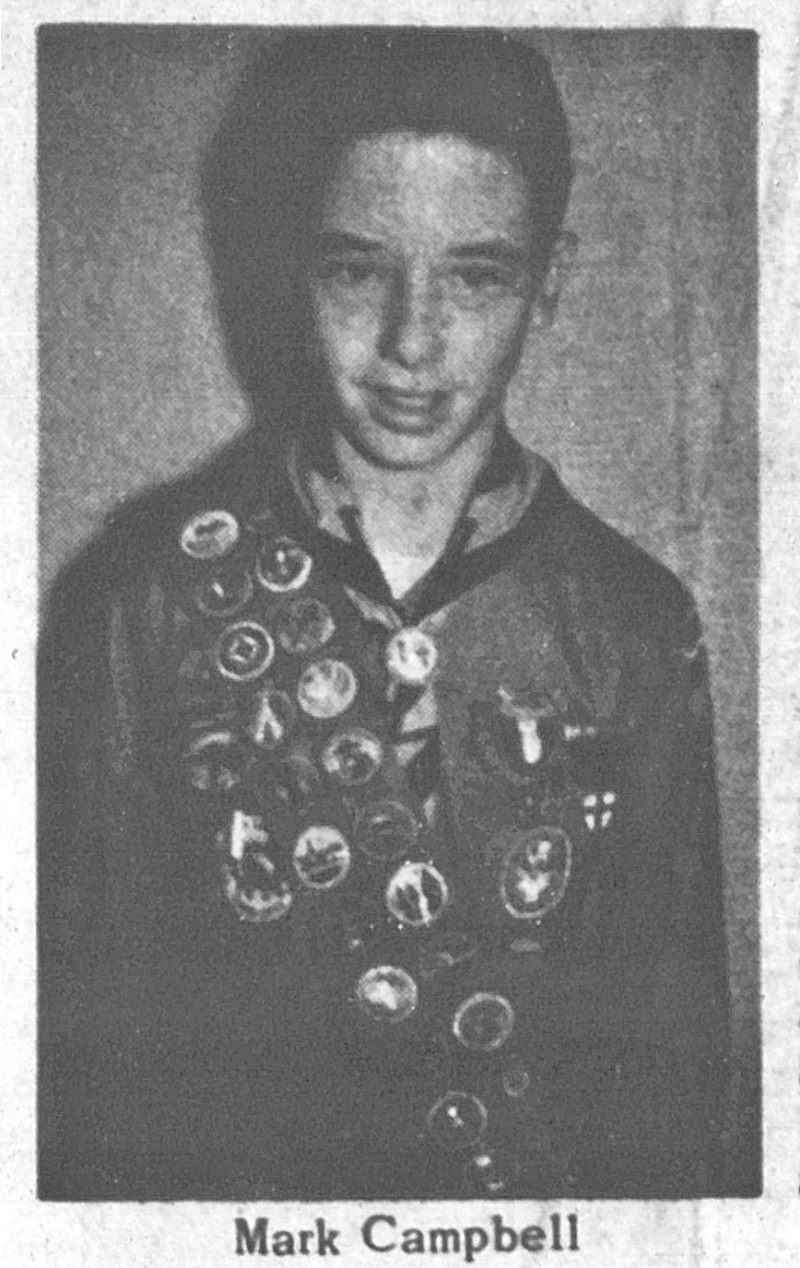 Mark Campbell, 13, son of Staff Sgt. And Mrs. Ronald Ross Campbell was the recipient of Scouting's highest rank, that of Eagle, and also the coveted God and Country award. Mark is an eighth grade student of the Ohio Valley School District, Peebles.